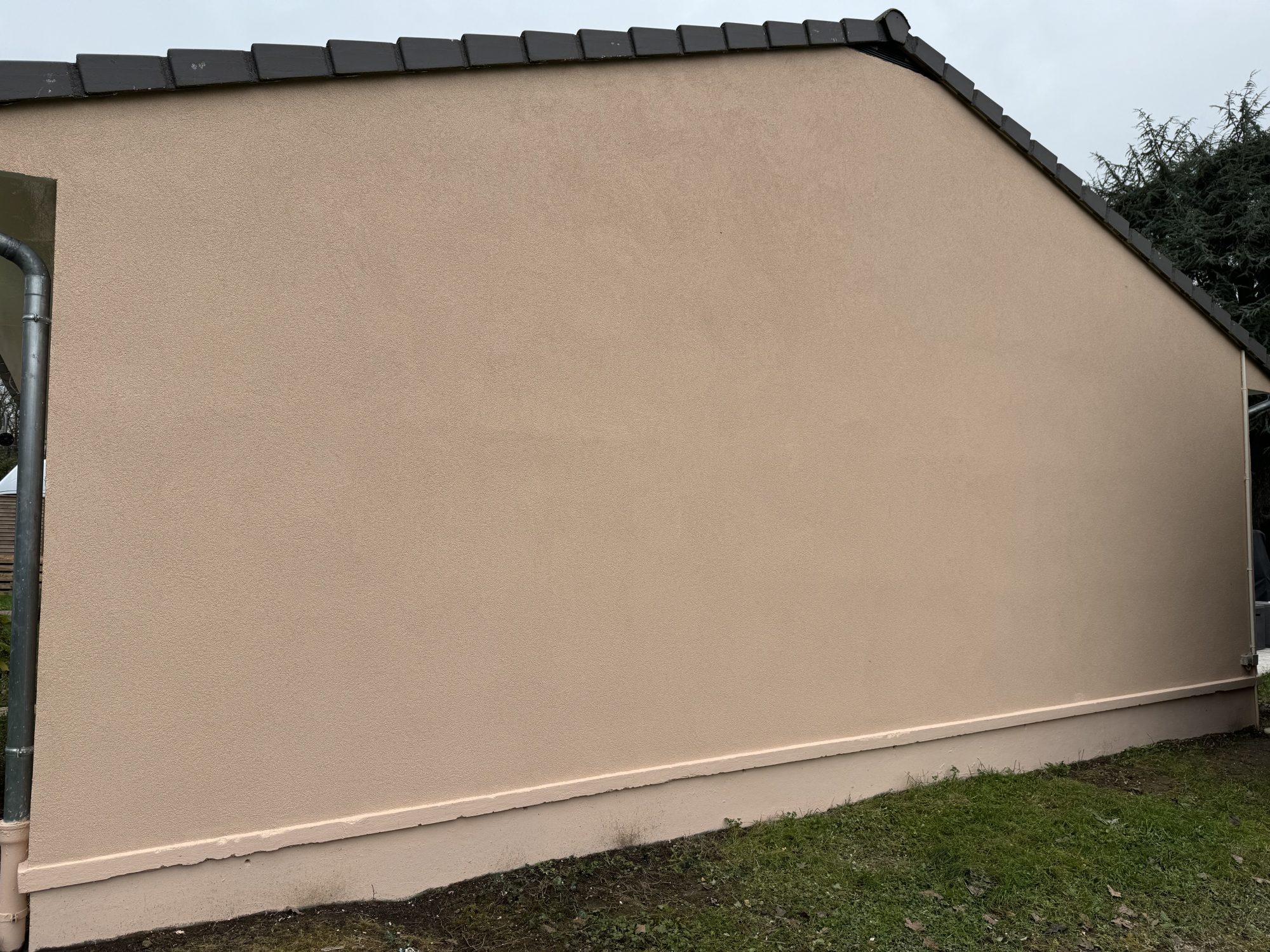 Nos équipes ont d’abord procédé à un nettoyage approfondi au fongicide de la façade pour éliminer les salissures, micro-organismes et parties non adhérentes. Nous avons ensuite appliqué une trame souple noyée dans un sous-enduit afin de renforcer la structure et prévenir la réapparition des fissures, notamment au niveau des jonctions des panneaux isolants.