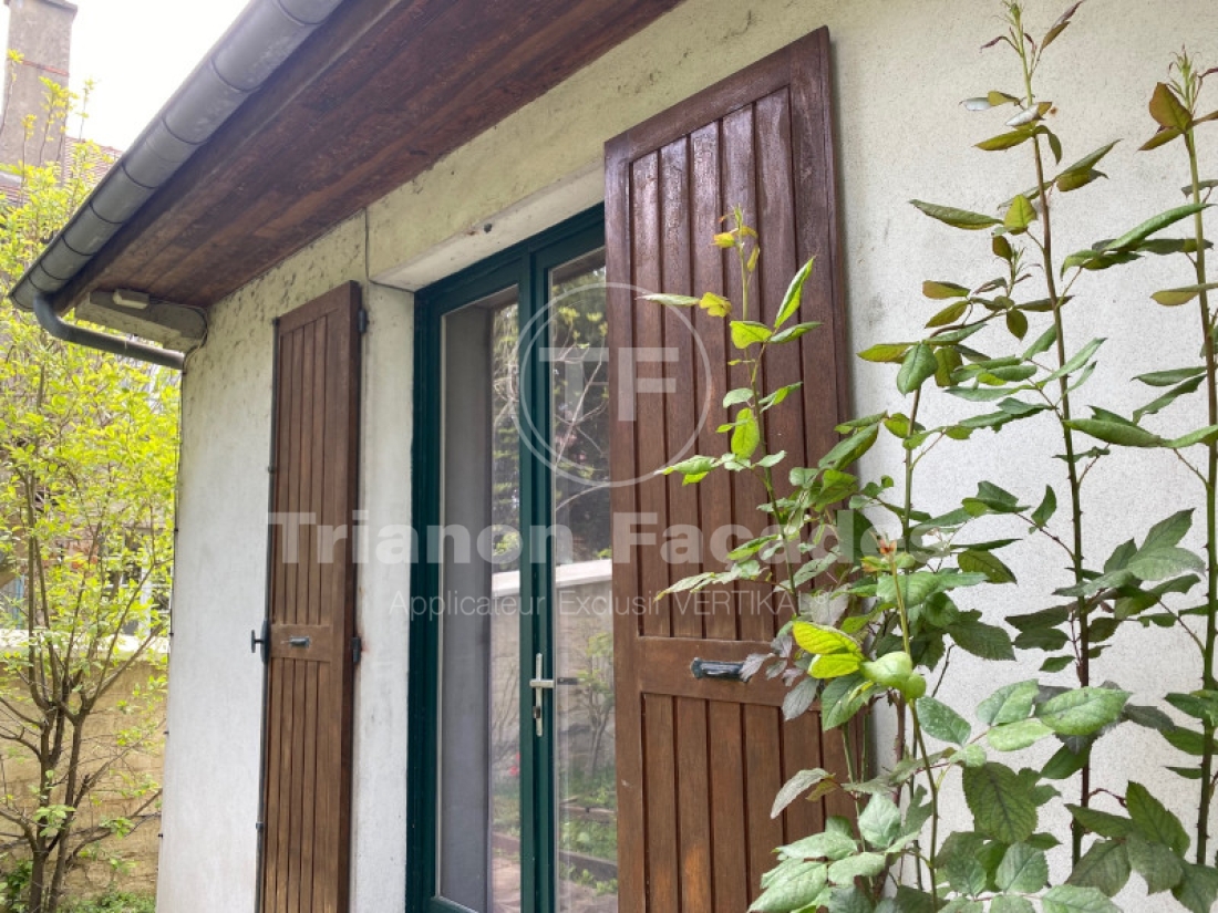 - Dessous de toit en lambris et volets vernis à rafraichir.