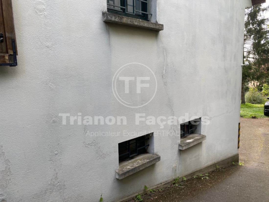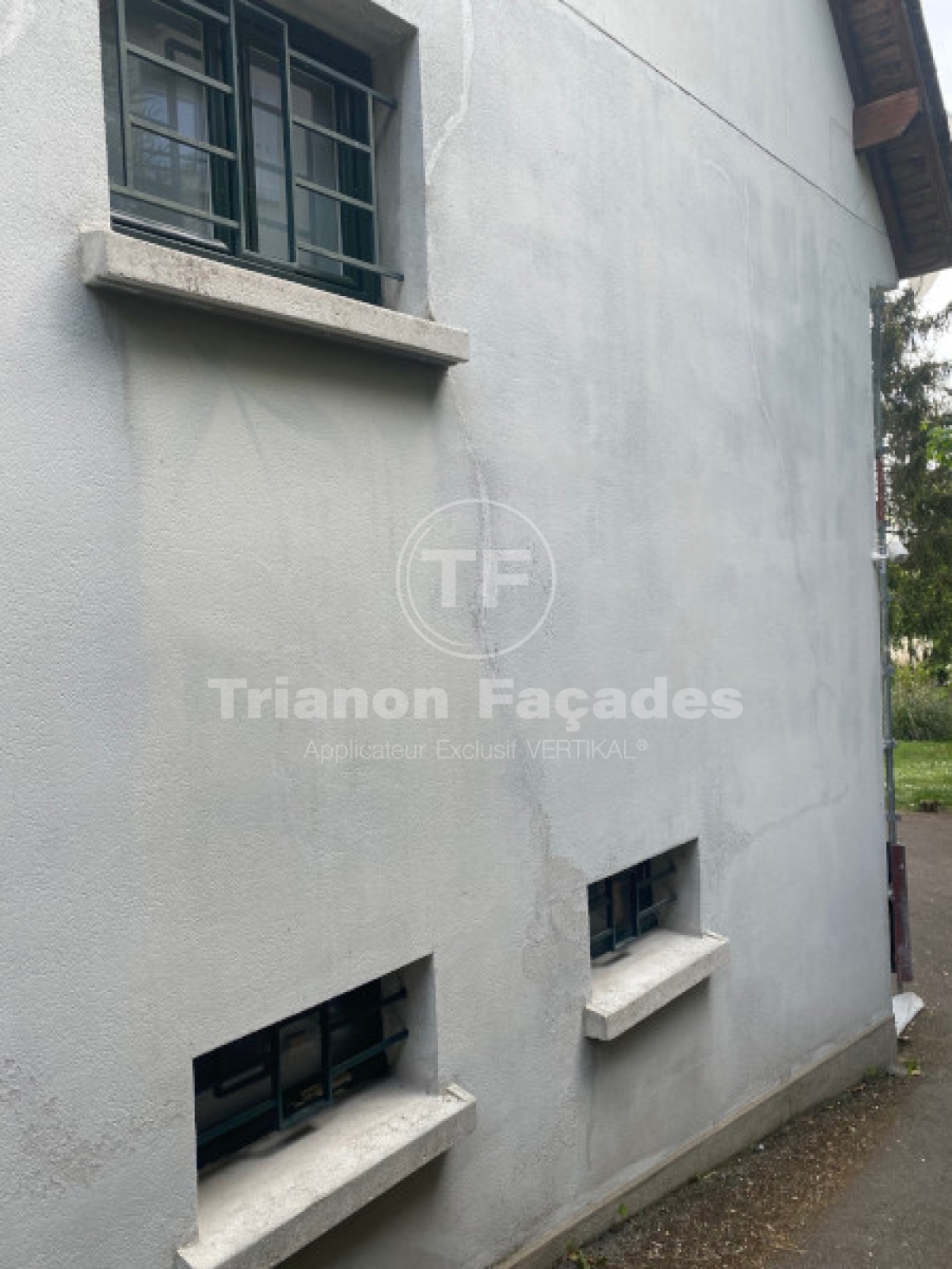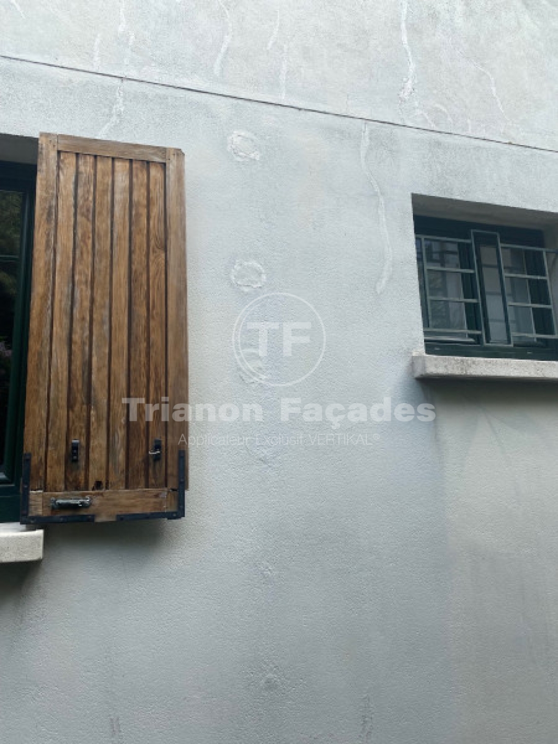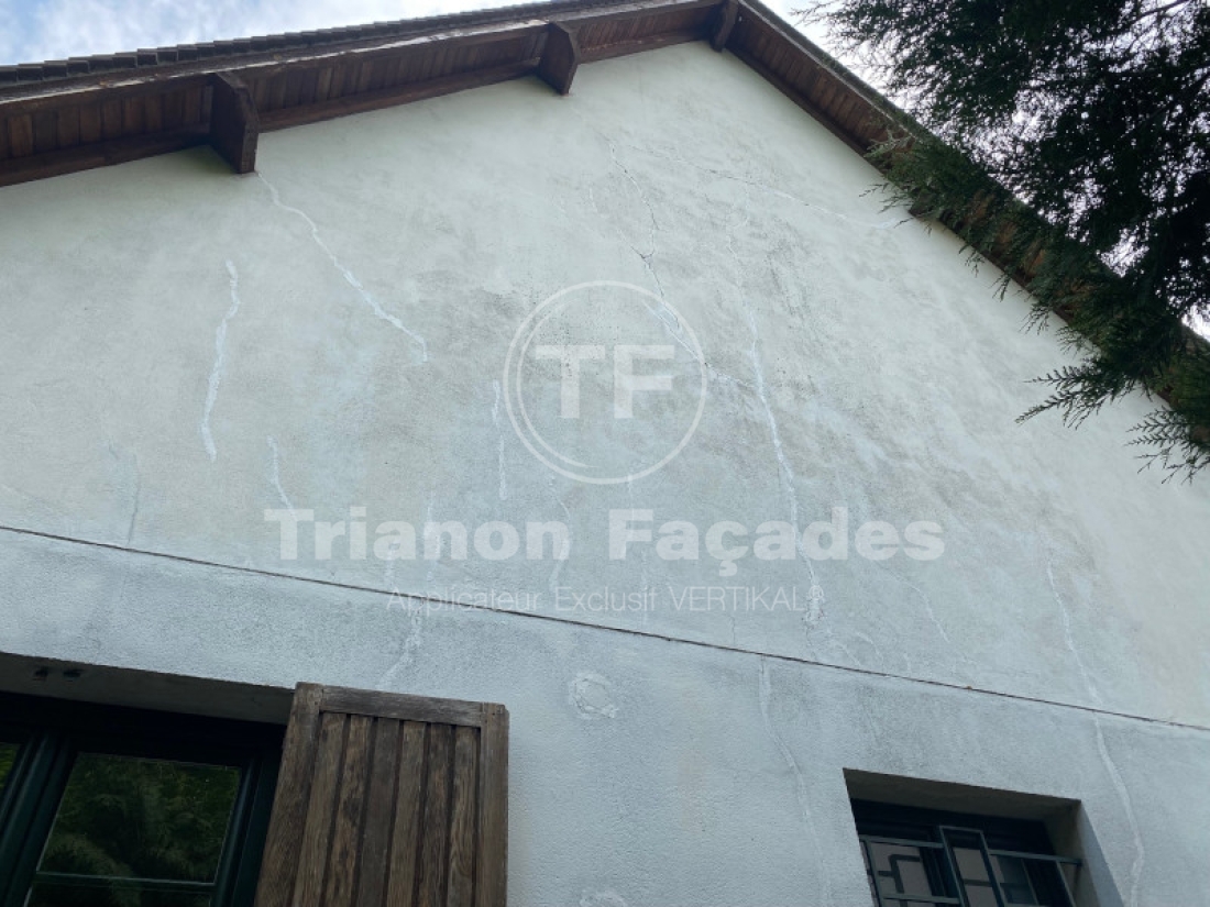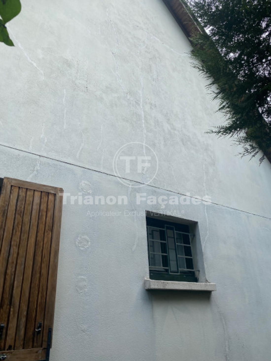 La peinture des façades de cette maison à Saint Germain en Laye se délitait et les façades étaient devenues poreuses. Des fissures étaient apparues sur le pignon gauche et laissaient apparaitre des infiltrations d’humidité.