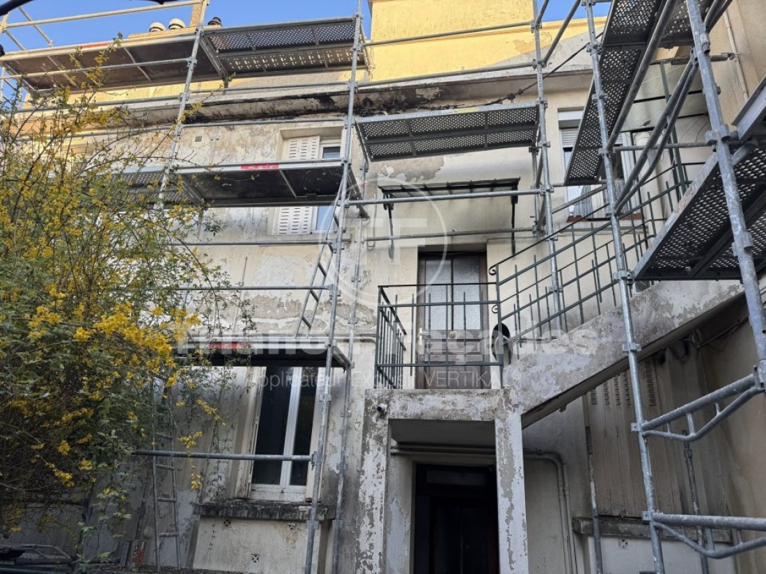 La végétation avait recouvert une partie des façades de la cour intérieure, endommageant certains éléments. En résumé, l’immeuble était dans un état de dégradation avancé au niveau des façades. C’est dommage pour une bâtisse signée de la main de l’architecte Camille Tochon, comme on peut le constater sur la plaque située sur la façade avant.