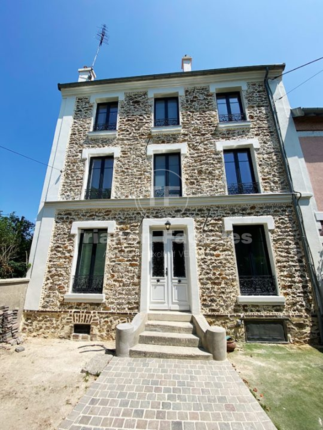 Cette belle maison en pierres meulières du début du 20ème siècle n’avait pas été restauré depuis plusieurs dizaines d’années. Le pignon avait été recouvert d’un enduit qui ne tenait plus et la vigne vierge qui le recouvrait n’avait fait qu’empirer les choses.