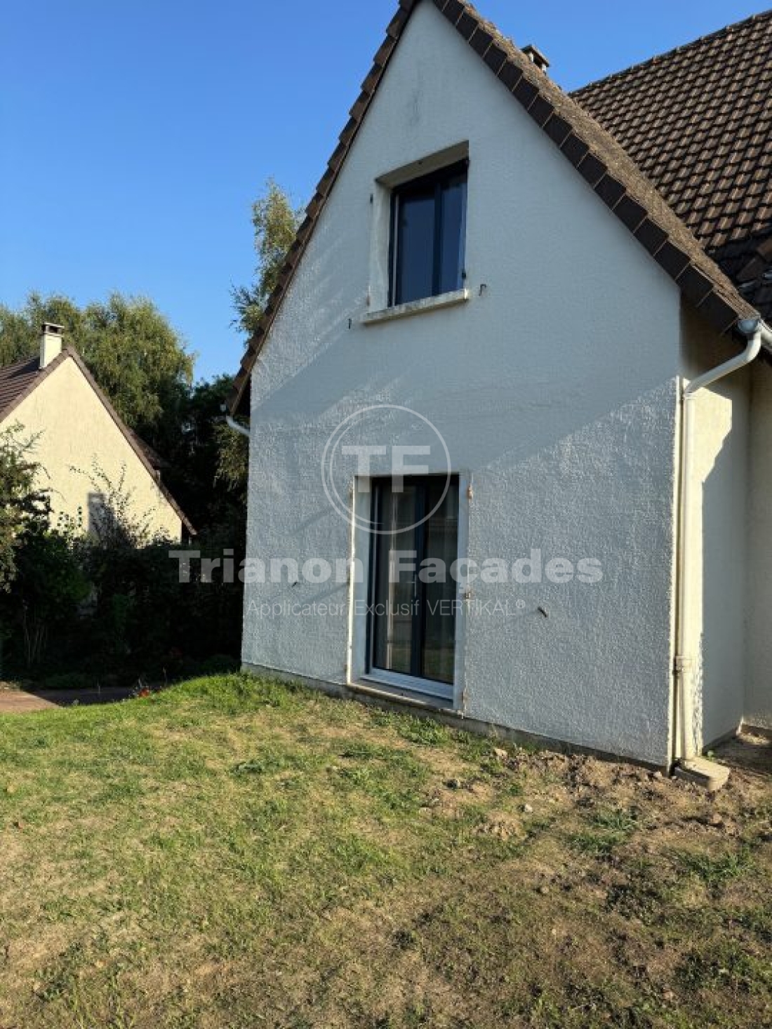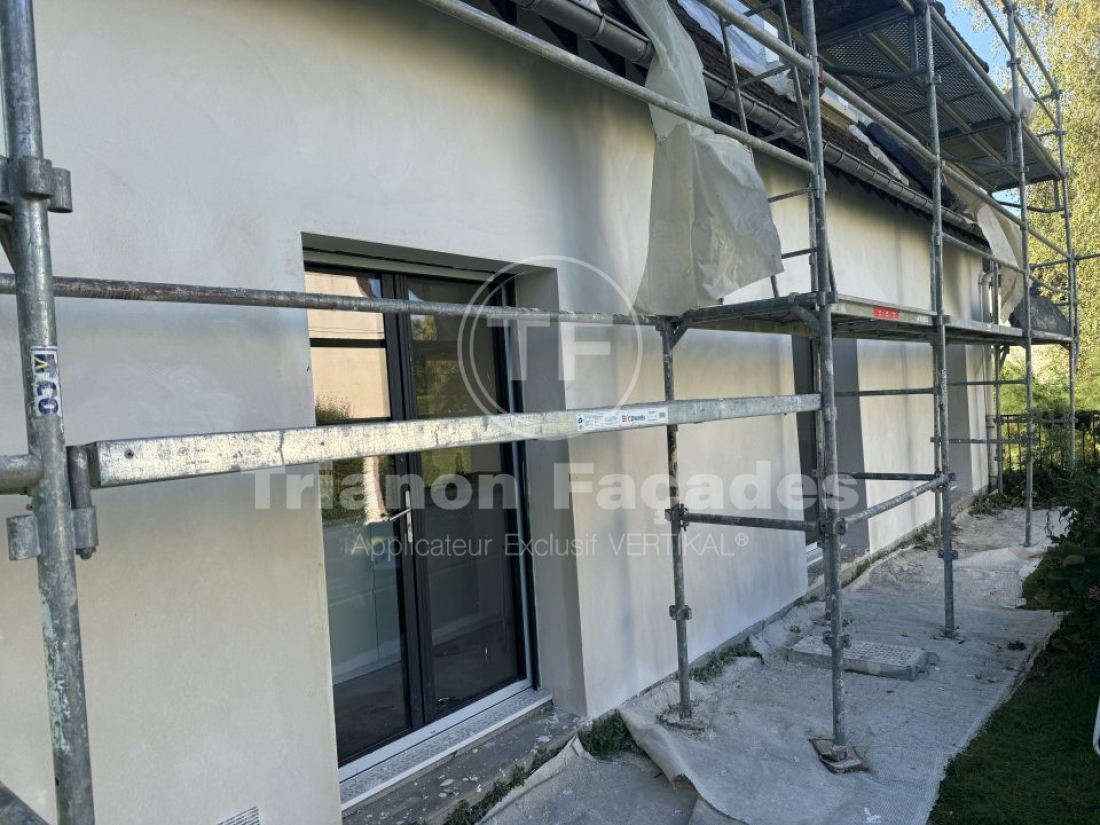 Le client voulait apporter un peu de modernité dans ce pavillon dans un quartier recherché de Chavenay. En effet l’enduit projeté donne l’aspect d’un grain grossier et beaucoup de clients nous demandent un enduit plus fin, plus moderne.